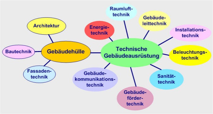 Die technische Gebäudeausrüstung betrifft alle technischen Anlagen, Einrichtungen und Installationen in Gebäuden, die dem Wohlbefinden von Menschen dienen.